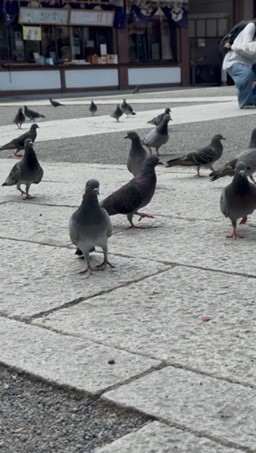 ロックオンされて大勢の鳩が一斉に寄ってくる光景は迫力があり印象に残りました。