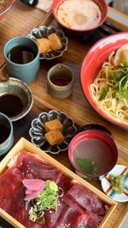 私はまぐろ重を、なかつじさんは担々つけ麺をいただきました。