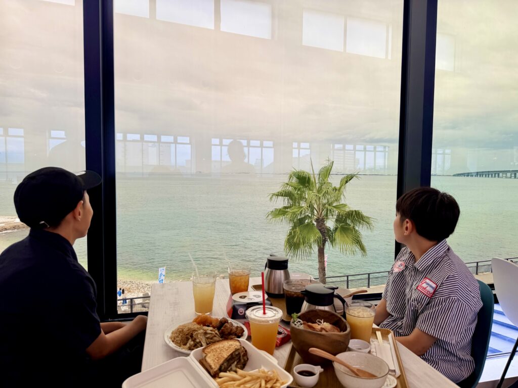 海を眺めながらランチが楽しめます。フードコート形式なので、子どもの好みに合わせて選べるのも嬉しいポイント♪