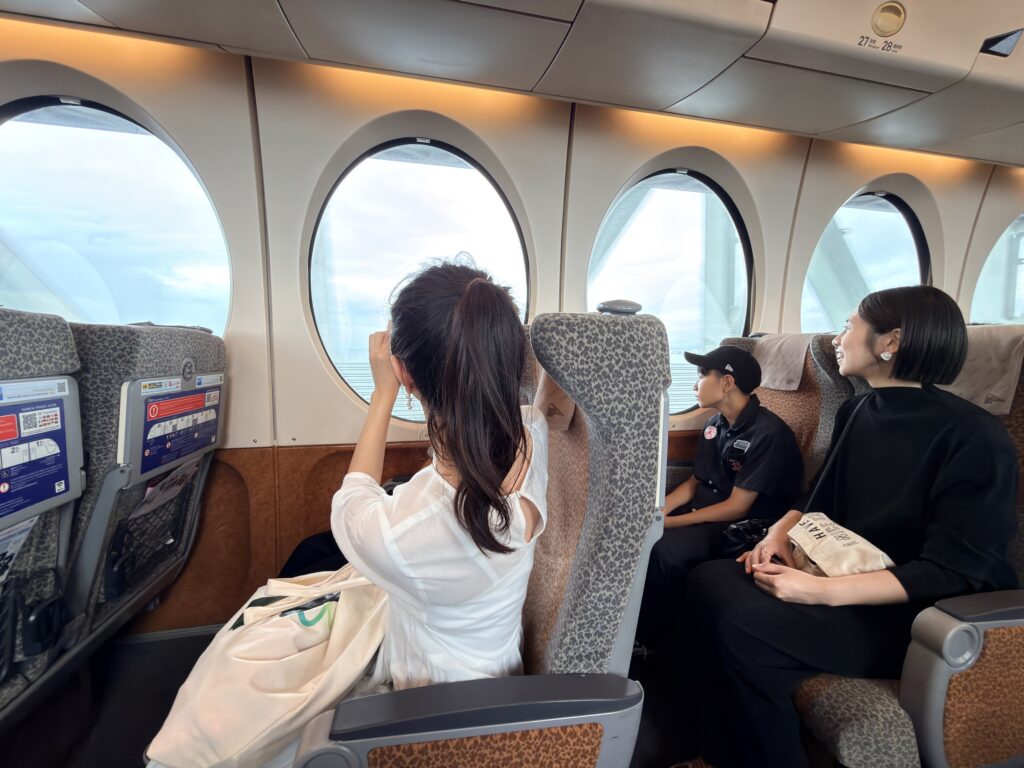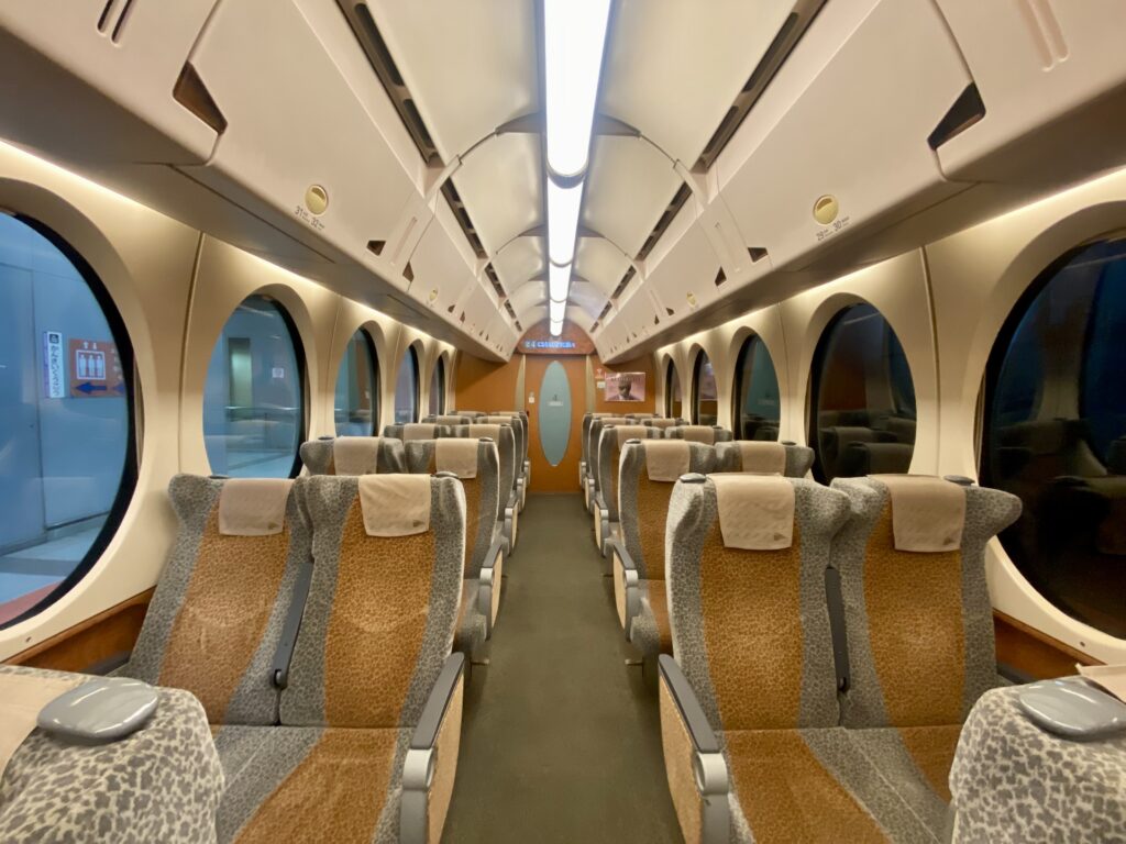 丸い窓や青い車体に、子供の目もキラキラ!