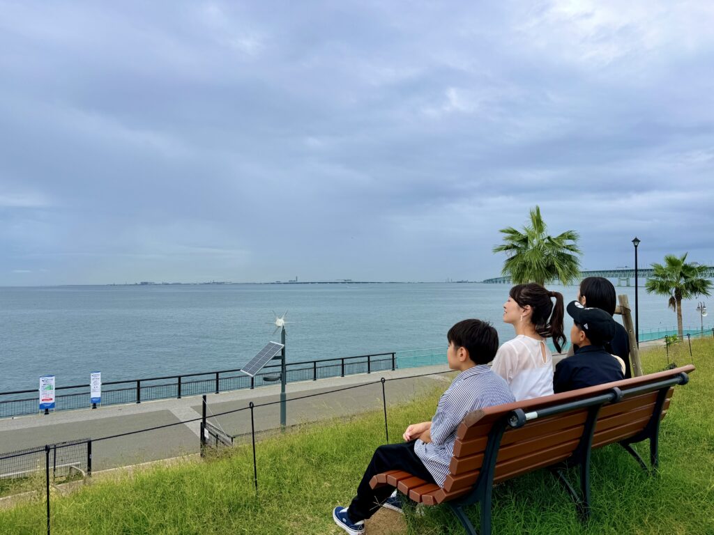 海風を感じながらおさんぽしたり、芝生広場や遊具で思いきり体を動かしたり、親子でゆったり過ごせます。